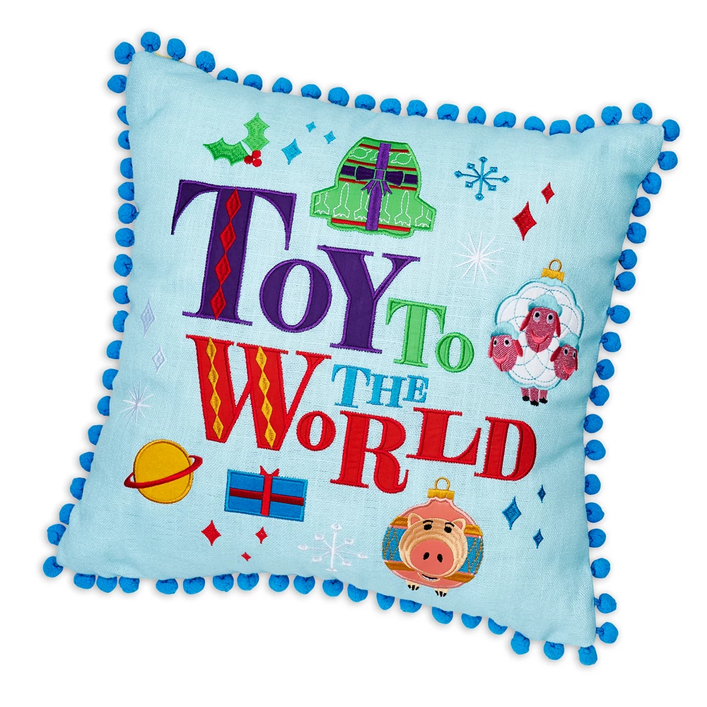 Éclairez votre intĂ©rieur avec un accessoire confortable ! Ce coussin Pixar Holiday est dĂ©corĂ© de pompons, de broderies et de motifs stylisĂ©s de Sulli, WALL-E, Buzz l’Éclair et d’autres.