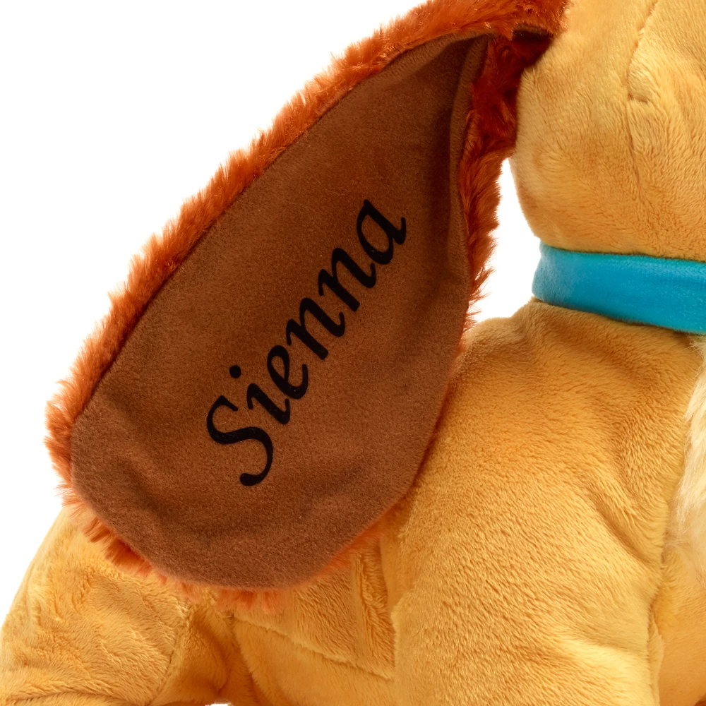 La jolie cocker a tout d’une lady avec ses oreilles tombantes duveteuses et ses grands yeux rĂŞveurs. Cette adorable peluche s’accompagne d’un collier et d’une mĂ©daille en relief.