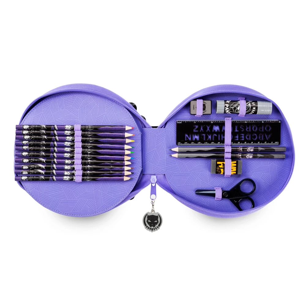 Avec ce kit zippĂ© de papeterie, les jeunes tĂŞtes couronnĂ©es auront le pouvoir Ă la rentrĂ©e ! InspirĂ© de Black Panther de Marvel, il contient de nombreux articles dĂ©corĂ©s de motifs classiques Ă l’effigie du personnage.