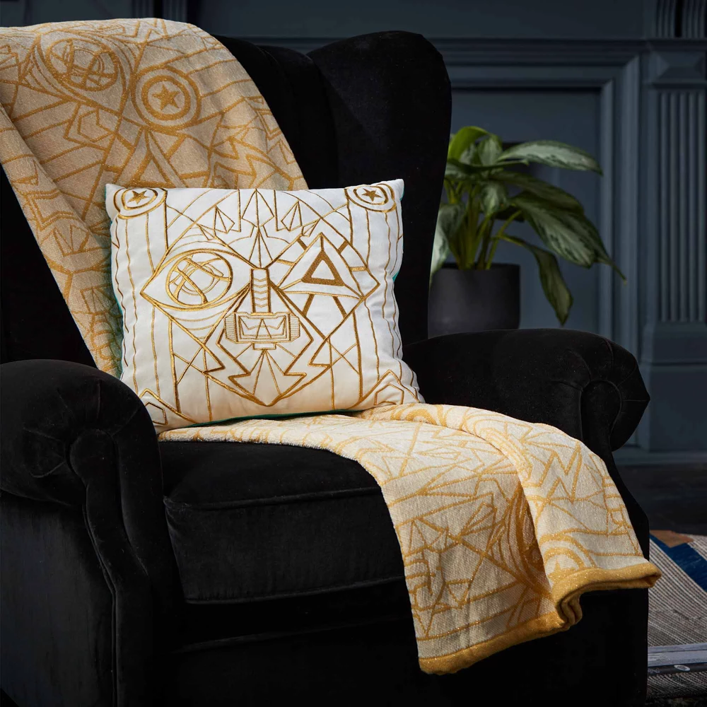 Avec ce plaid Avengers, après l’effort, le rĂ©confort ! Ce modèle comprend une bordure dorĂ©e et un imprimĂ© intĂ©gral reprĂ©sentant les logos de plusieurs Avengers.