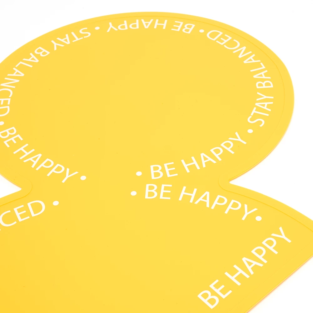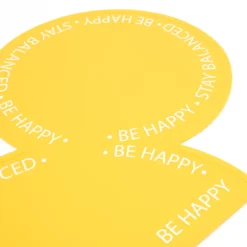 - Inscriptions « Be happy » (Soit heureux) et « Stay balanced » (Garde un équilibre) sur les bords