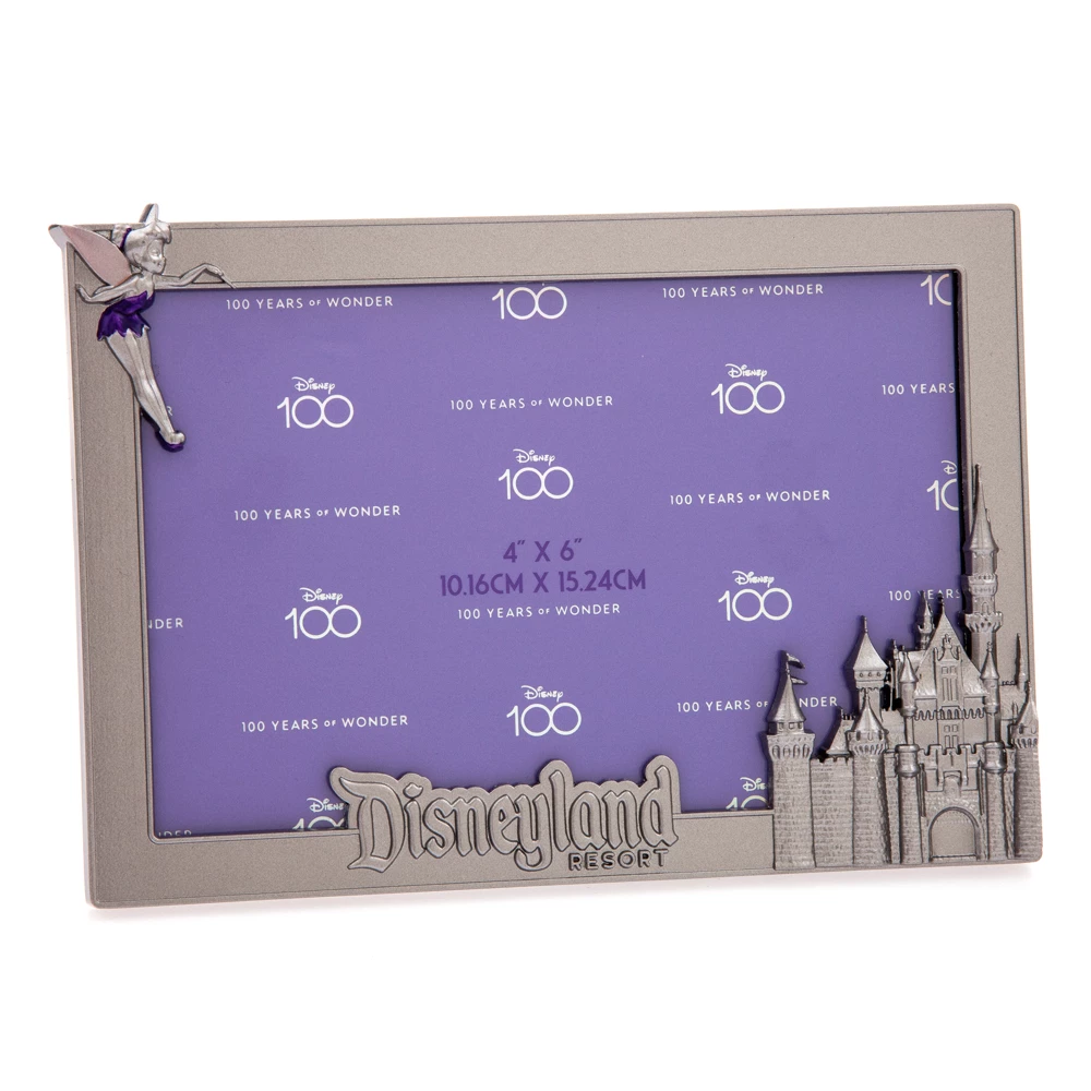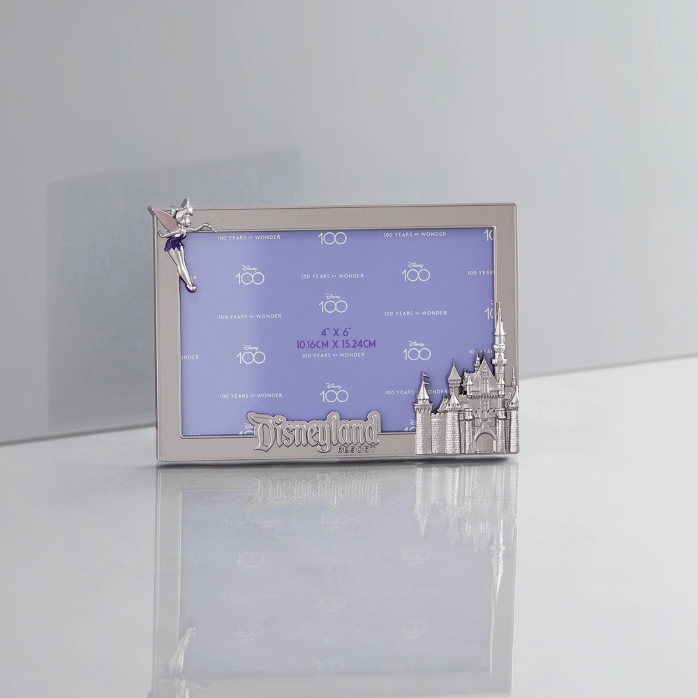 Exposez vos souvenirs de l’endroit le plus magique de la planète dans ce cadre photo Ă l’effigie de Clochette, du château de La Belle au Bois Dormant et du logo « Disneyland ».